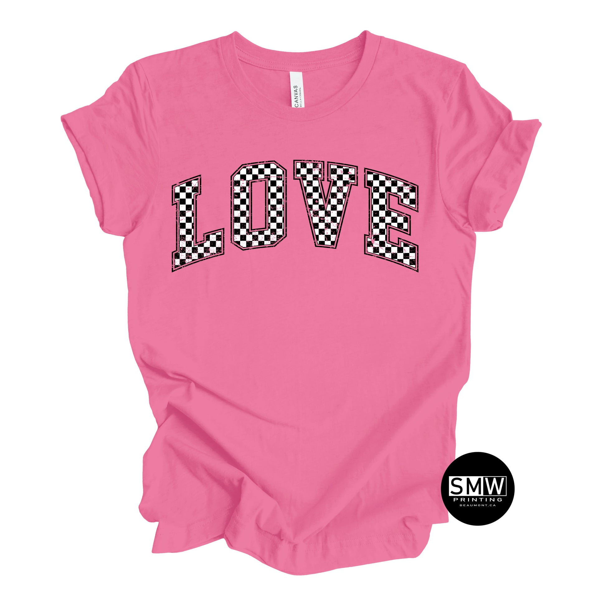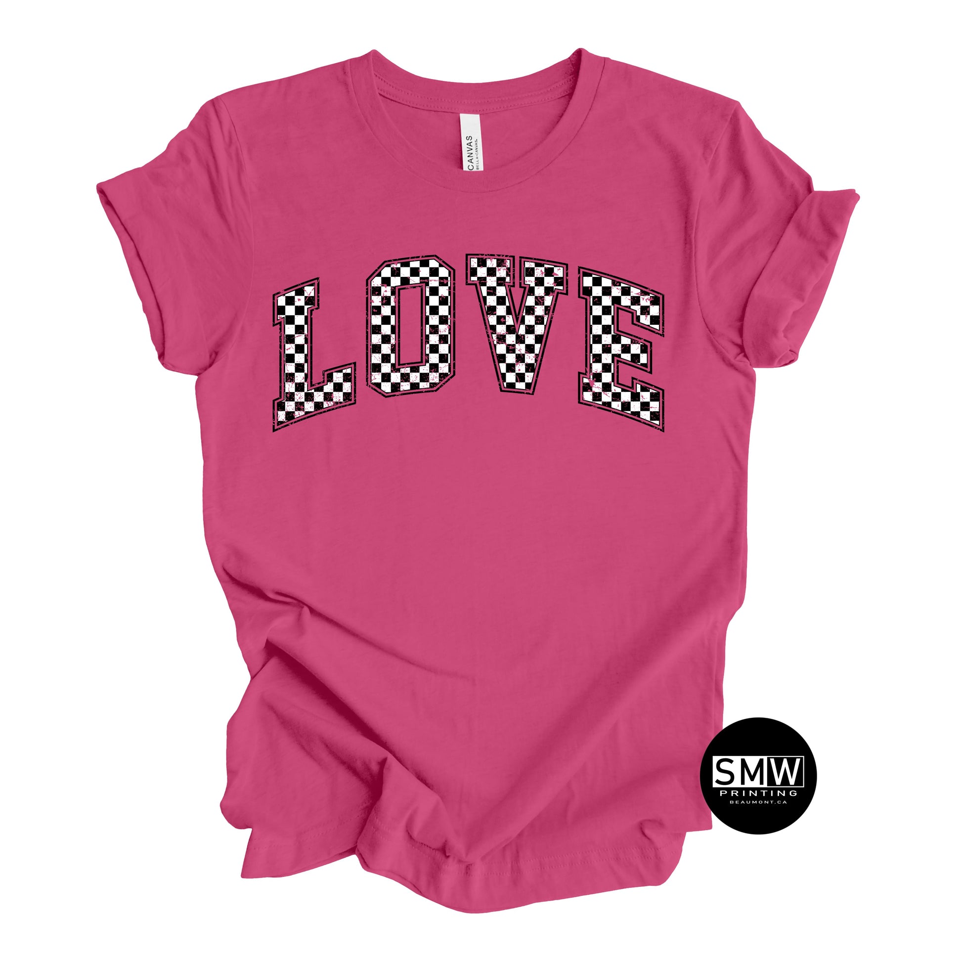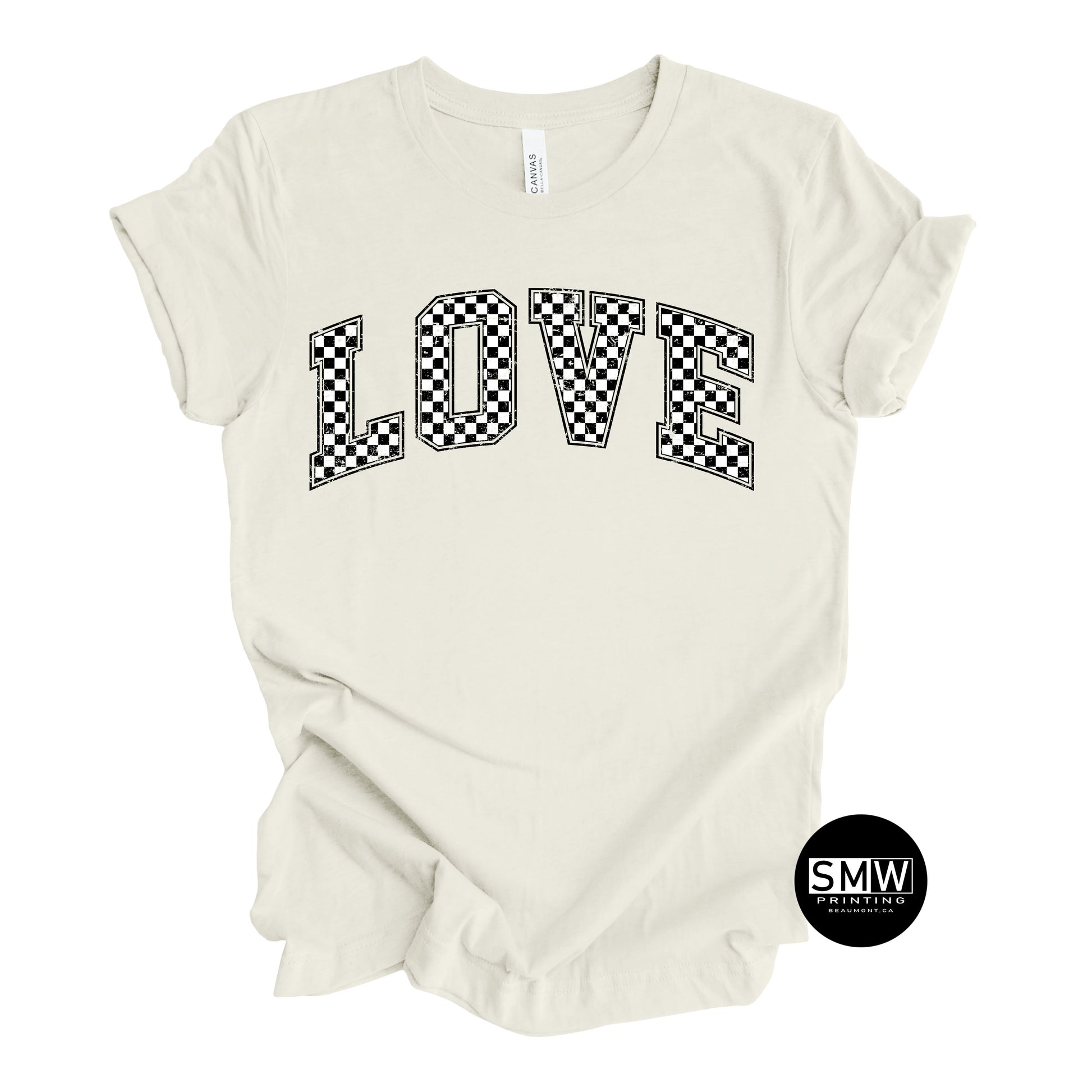This LOVE tee features a fun checkered design with a cool, slightly grunge vibe—perfect for everyday wear, Valentine’s season, or spreading love year-round. Easy to style, comfy to wear, and guaranteed to stand out. 💫🖤